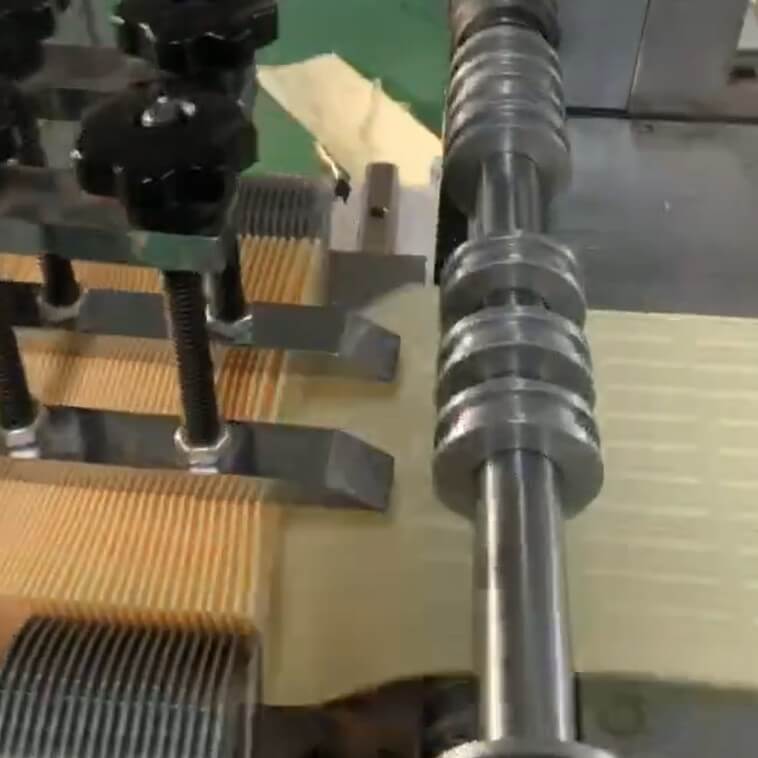 This air filter pleating machine is specifically designed for folding air filter paper and is the core equipment for producing panel air filter elements. This air filter pleating machine precisely folds the filter material into continuous, uniform wavy pleats. Then, after further gluing and sealing, a sturdy panel is formed.